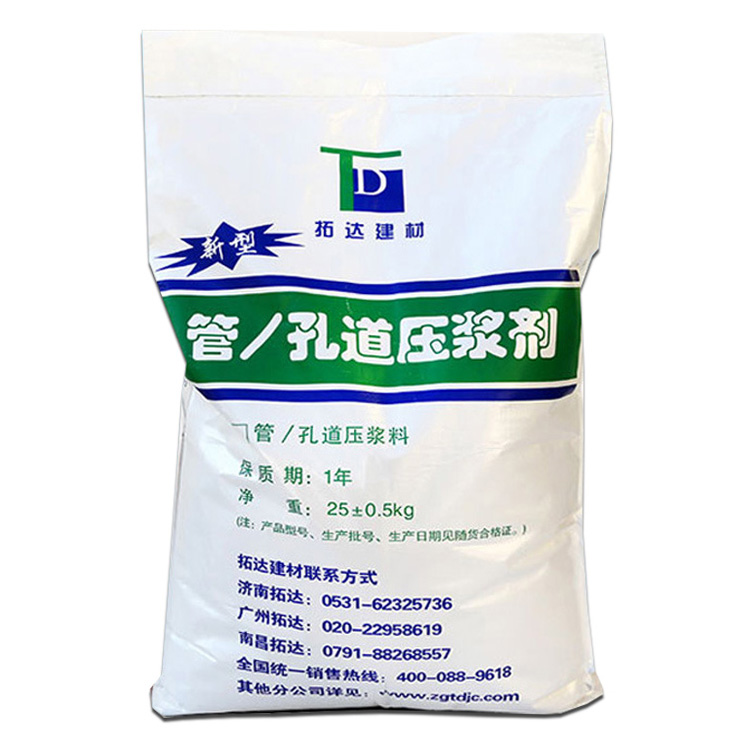 6.使用方便,拓達(dá)TD-C2管道壓漿劑以8~12% 摻入普通水泥拌制成微膨脹壓漿材料即可使用。推薦摻量10%。